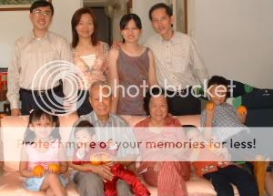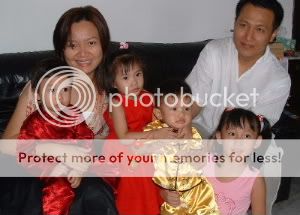 We did the routine visit yesterday and did the routine stuff - ang pows, cookies, ba kwa, watched CNY programme reruns, took pictures, blah blah. These two photos are carefully chosen not showing my bulging waist, heh.